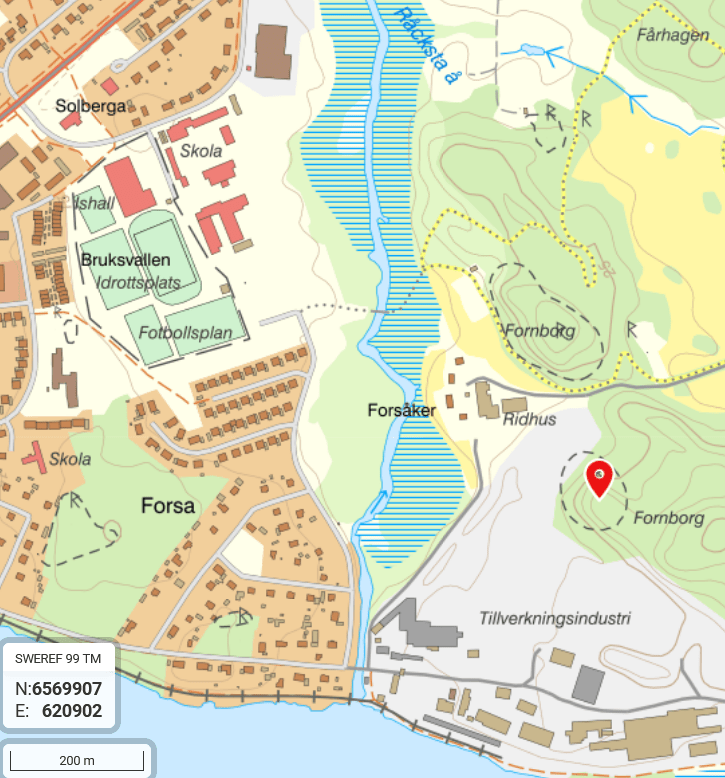 Besök: Det är cirka 1 km gångväg från busshållplats Åkerskolan eller Solbergavägen i Åkers Styckebruk. Jag parkerade på norra änden av Parkvägen nära Åkers Skatepark och fotbollsplan där det är nära till bro över Råcksta å och cirka 700 meter till fornborgen. På det stora berget norr om fornborgen är ytterligare en registrerad fornborg som sannolikt är en tidigare anläggning (Åker 20:1). Besökt i februari 2024.