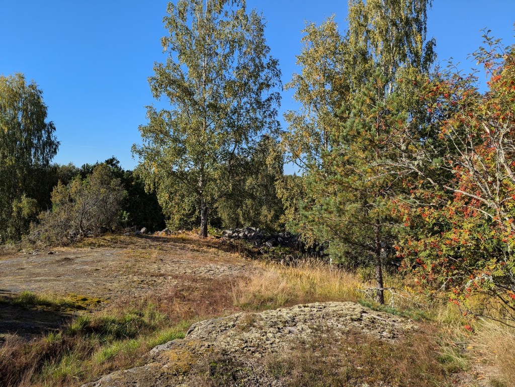I Olausson 2014:195-196 förmedlas en muntlig uppgift från Anders Carlsson att en terrassering skulle finnas inom murarna. Vid fältbesök av Bornfalk Back (2020-04-01) bedömdes denna som en cirka 30×15 meter stor husplatå i norra delen av lokalen (2023:332). Det finns många potentiellt bra ställen för bebyggelse på borgen.