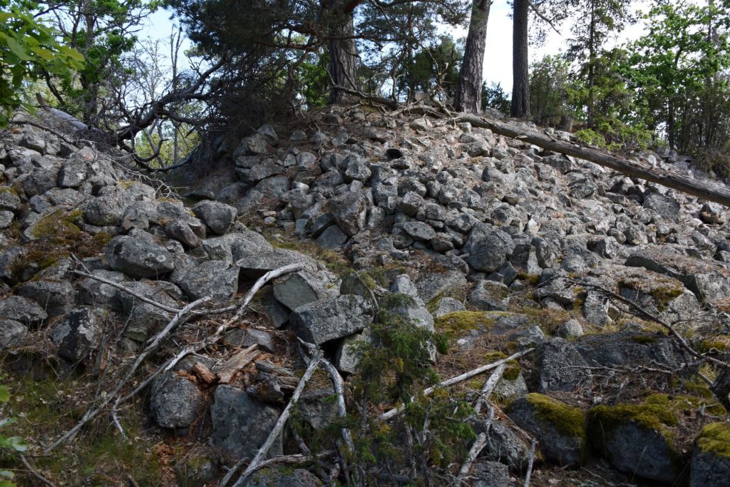 Besök: Det gick att parkera vid den lilla vägen söder om fornborgen. Busshållplats finns vid Barva kyrka knappt 2 km från fornborgen.