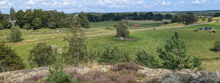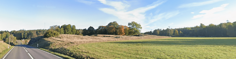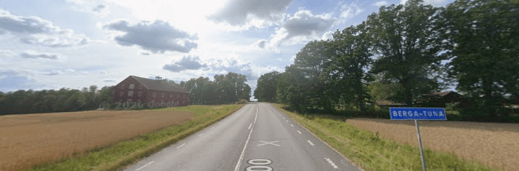 Berga ligger här på Tumboslätten. Det är 500 meter till ett stort gravfält. Sockenkyrkan ligger 750 meter nordväst om Berga och Tuna ska ha legat Husby 1,5 km nord. Den magnifika fornborgen Bogsten överblickar Tumboslätten, den ligger 1,7 km sydväst. Nedan Berga gården i bakgrunden – från nordost. Långt avstånd men ger en idé om Tumboslätten.