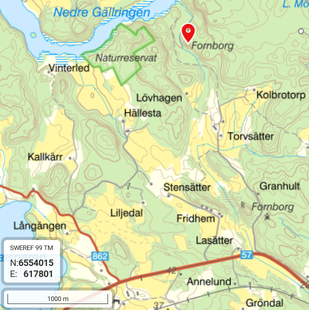 Borgberget ligger nära sjön Gällringen som tillsammans med Sätraån, Skylsjön och troligen Trynen under järnåldern bildade ett V-format sjösystem med sydspetsen i Hällesta. En vik från Nedre Gällringen torde gått in där det nu är en våtmark väster om borgberget.