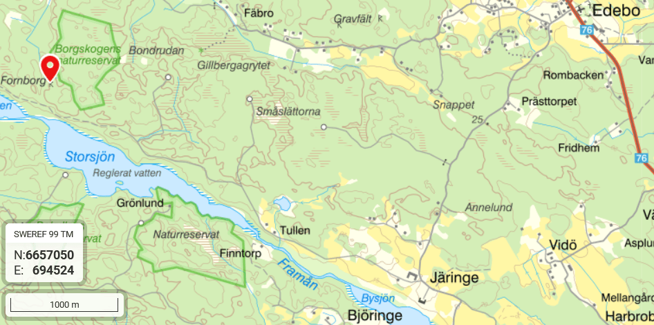 Besök: Vid Edebo kyrka tag av mot Järinge, där vägen delar sig håll vänster. Det finns en smal skogsväg från Järinge som går till 300 meter från borgen men det är skyltat om grindar/träd i början av av denna väg och kanske önskat att man inte tar den (då är det cirka 3 km gång på skogsväg, sen cirka 300 meter terräng). Ta med kompass och håll reda på var du är i terrängen, det är inte lättgånget. Busshållplats finns vid Edebo kyrka cirka 7 km från borgen.