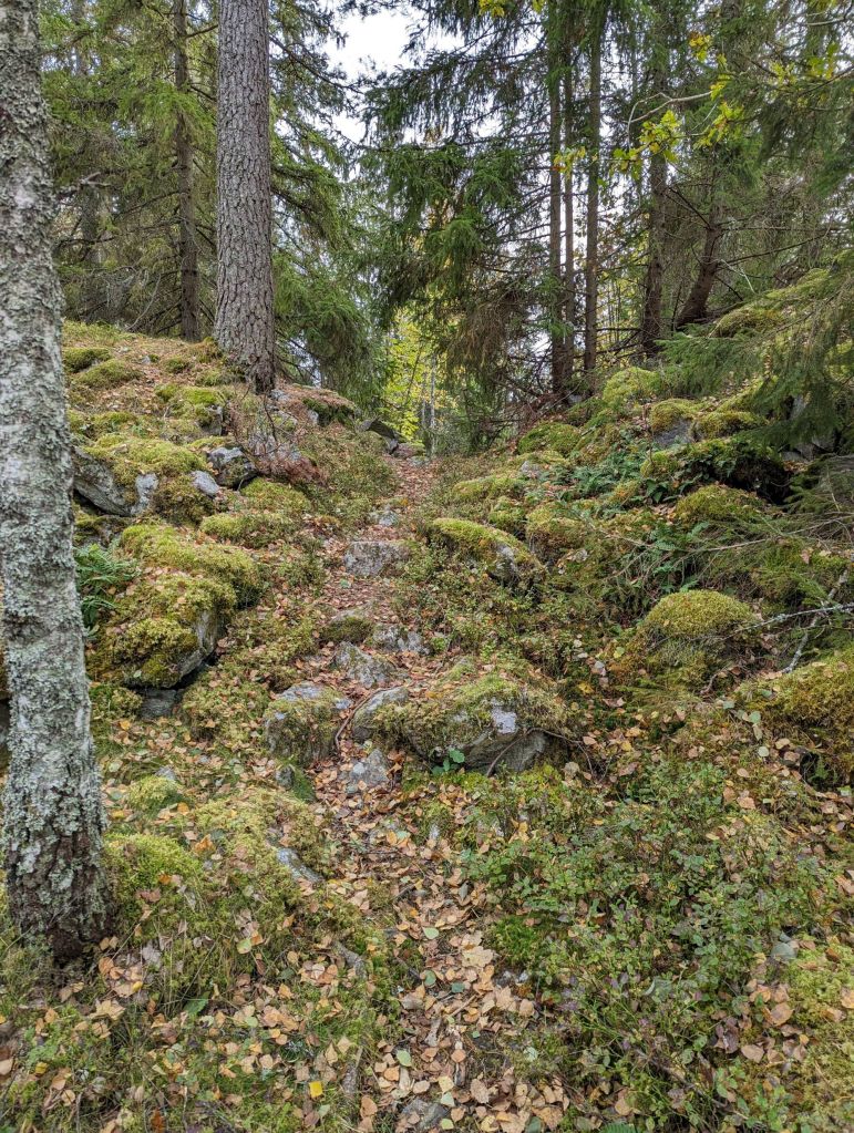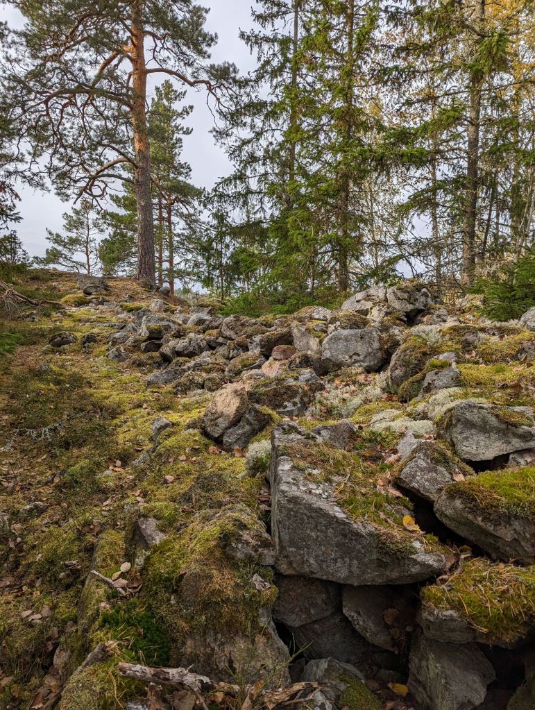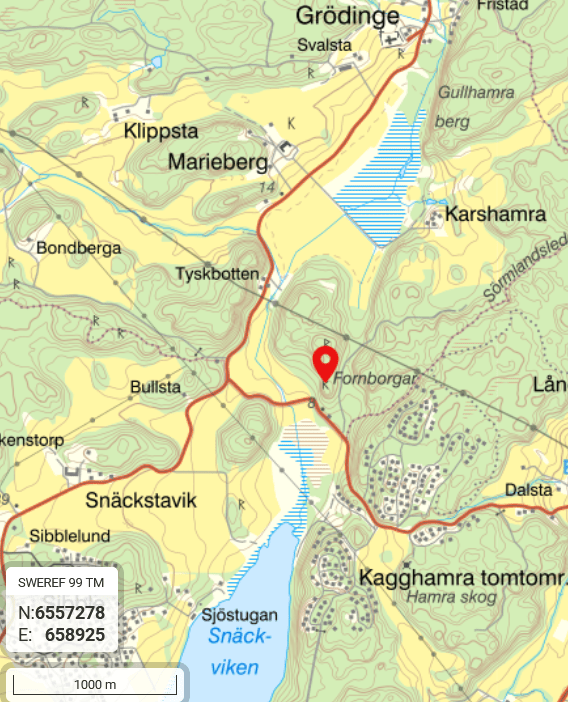 Under järnåldern var dalen sydväst om berget del av Snäckviken, en inre del av Kaggfjärden. Borgberget som är brant utom åt nordväst är del i ett större bergsområde där höjden norr om fornborgen är högre och större och troligen är en äldre vallanläggning. Mot den mindre branta norra delen och mot nordvästra sidan finns en cirka 80 meter lång mur, 2–4 meter hög och som mest 10 meter bred. Det finns ett cirka 15 meter långt utskott vid en öppning i norr. Borgens inre område ca 90×70 meter. Det finns två ingångar ganska nära varandra varav en är igensatt. Inne i borgen är dels ett ganska flackt parti dels punkthöjder med berg i dagen åt väster där berget stupar brant. I oktober 2023 var det nyligen avverkat kring berget och vid utsikt.