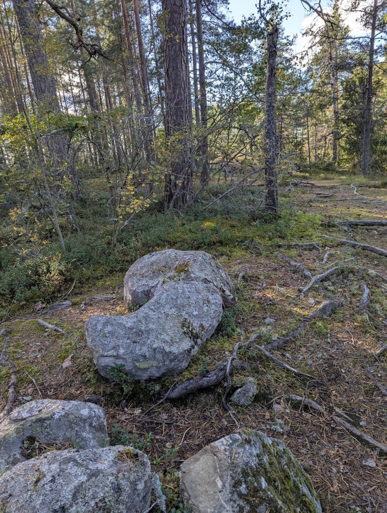 Symmetriskt, högt, lite bönformat berg omgivet av bergsområde med skog med många mossar i närområdet. Det är branta sidor utom åt nordöst där det är lätt att ta sig upp. Det är rikligt med stora flyttblock på berget. Det finns även här en stensträng/vall tvärs över berget i väster med liten nivåskillnad mellan inne/ute. Den är markerat som mur på orienteringskartan. Det finns en parallell lite otydligare sträng längre österut på berget. Stenvallarna/strängarna verkar omgärda västra delen av bergskrönet. Inom det området finns några flyttblock, och i större antal finns sådana i sluttningen åt väster.