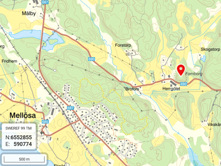 Stensättningar och gravfält ses kring samhället Mellösa. Det är knappt 2 km västsydväst till sockenkyrkan. Gården Stav ligger 1,7 km österut.