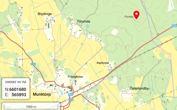En av flera borgar i skogspartiet norr och väster om slätten vid nuvarande Köping. Denna del av skogen kallas Svinskogen och tillhör Överskälby, tidigare låg den på prästgårdens mark (Schnell 1934:62). Det är en kilometer till nu odlad jord både åt väster och öster. Visberget ligger i samma skogsområde som denna borg. Gården Törunda 1, 2 km österut skrevs Thorlundum år 1385. Munktorps kyrka med Torsbacken ligger 1,8 km sydväst. Brydinge (brytens gård, en administrativ funktion) ligger 1,6 km åt väster och Viby, ett heligt Vi? cirka 1,8 km åt öster.