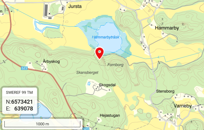 Borgen är byggd i på Hammarbys ägor i skogen norr om ett sjöstråk som på järnåldern gick över större delen av Enhörnahalvöns norra del i öst-väst riktning. Nuvarande Hammarby träsk var en större sjö. Jursta och Hammarby låg på andra sidan sjön.