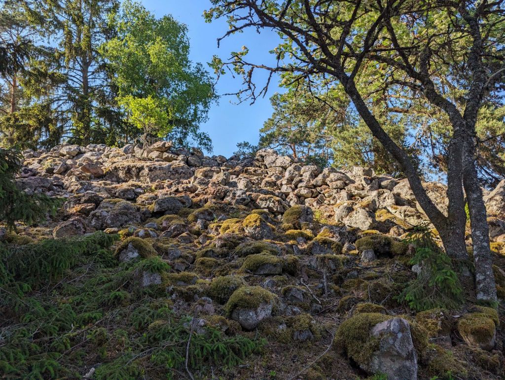 Besök: Jag ser nu i efterhand att det finns en parkeringsmöjlighet på väg 523 mot Överenhörna strax efter gården Årbyskog (om man åker norrut) alldeles innan man är ute på odlad mark. Därifrån är det cirka 1,2 km österut i skogskanten till fornborgen. Med cykel kan man ta den lilla skogsvägen som leder till borgen österifrån och komma till fornborgens fot (det går ej att parkera bil i början av den vägen utan att blockera den). Busshållplats Årby skog, en dryg kilometer från borgen. Mycket vackra omgivningar och en fascinerande mycket besöksvärd borg. Besökt i maj 2024.