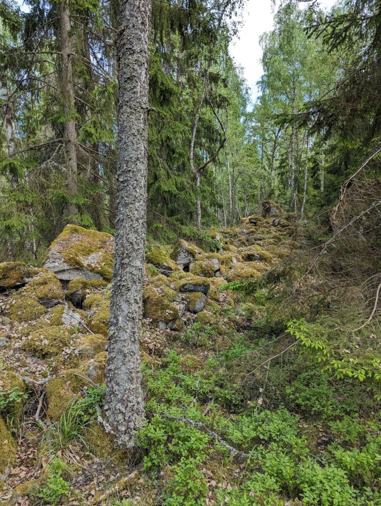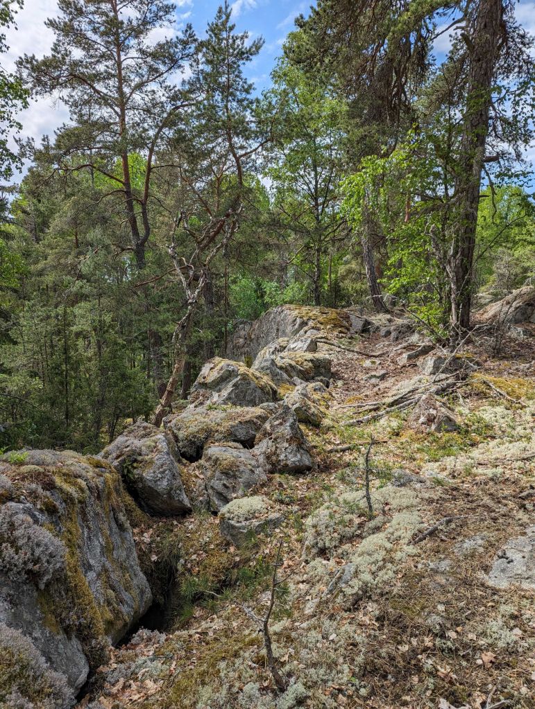 Besök: Från E 18 vid Bro tag väg 259 mot Skokloster. Jag parkerade invid infarten till området Lugnet men i anslutning till den bommade vägen innan Hagalund kanske är ett bättre alternativ. Det är mycket rasad sten kring hela berget så det kan vara fördel att gå på väg där sådan finns. Det går att ta sig upp på sydsidan. Busshållplats Lugnet. Besökt i maj 2024.