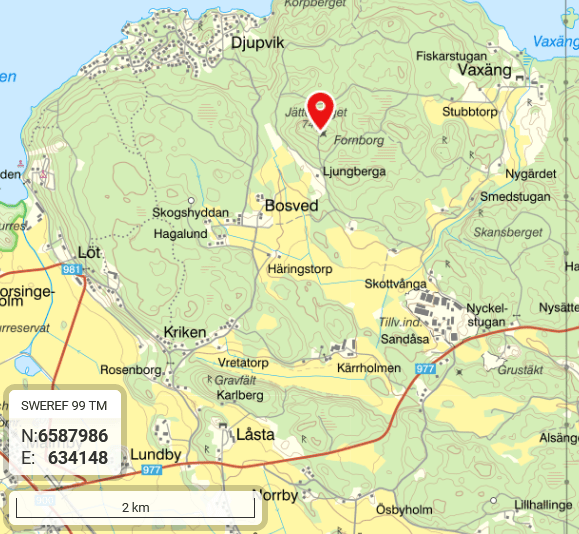 Besök: Från Strängnäsvägen väg 977 ta av mot Vaxäng, sen vänster när väg delar sig, eventuellt är den vägen bommad. Busshållplats finns vid Sandåsa 2,5 km från borgen. Folkvandringstida borg med sentida tillägg och ombyggnader ”i görligaste mån återställd”. Besökt i mars 2024.