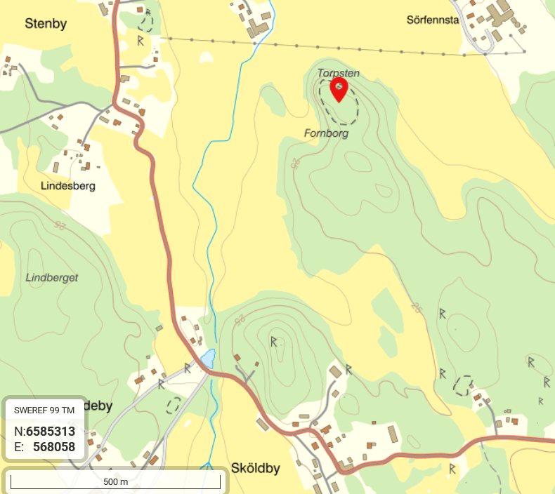 Besök: Vid väg 505 cirka 700 meter öster om Sköldby fanns en möjlig parkering, vi följde sen åsen norrut en dryg km i skogen till fornborgen. Ingen busshållplats nära. Besökt i augusti 2022.