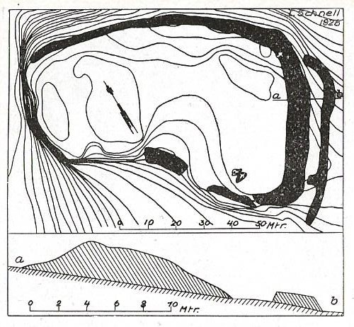 Fornborgen är ca 130×50-80 meter och ligger på norra änden av ett åsliknande bergsparti som är brant mot alla sidor utom söder där man kan ta sig upp. Den allra brantaste sidan med stup åt Stenbygården saknar mur och i viss mån även den södra delen där mur täcker en ravin men där det i övrigt är brant. Huvudmuren är lång, cirka 190 m och tar klart mer än halva omkretsen av borgytan och den är dubblerad en sträcka i sydöst. Högsta murhöjd 3,3 meter, som bredast är muren 4 meter. Borgytan är tämligen plan och gräs- och trädbevuxen. Delar ska ha varit uppodlade enligt Schnell (1934:58). Det finns berg i dagen mot den brantaste sidan där man har utsikt över slätten och Stenbygården. Några flyttblock finns i borgområdet.