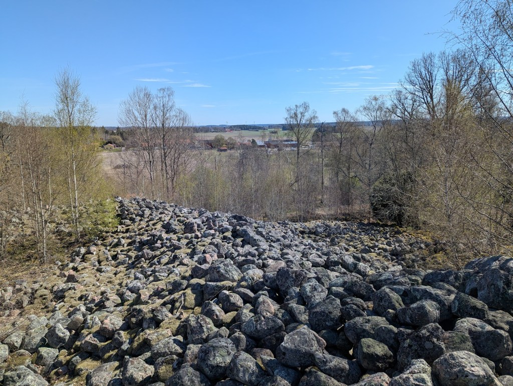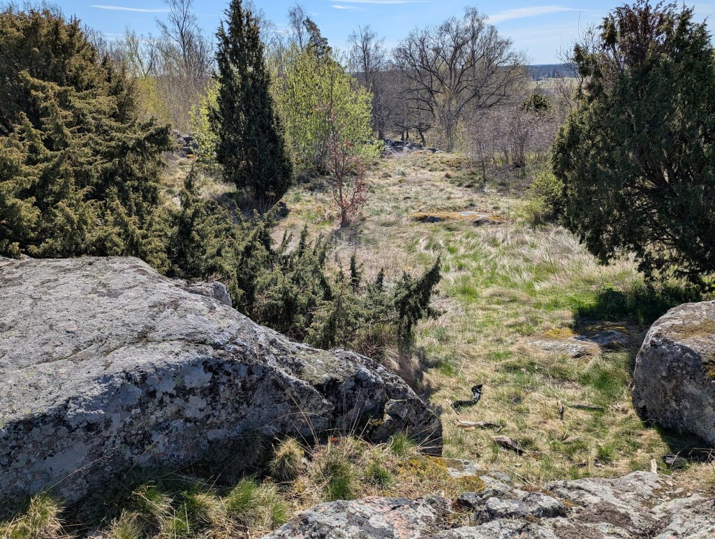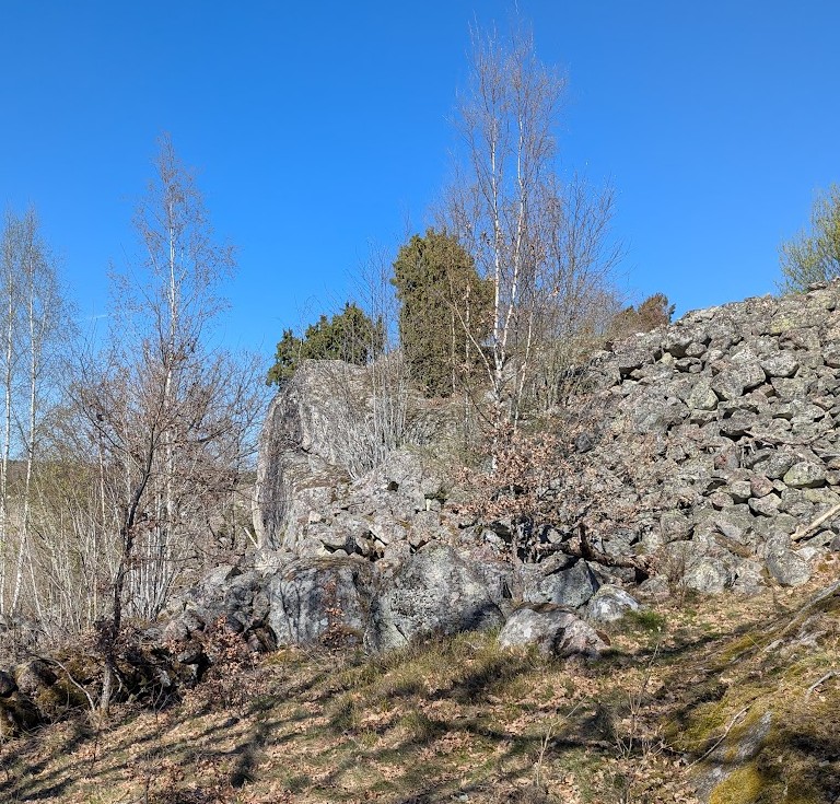 Fornsök nämner terrasseringar utanför murarna, fem husgrundsterrasser, varav två osäkra. 14C dateringar gav resultaten 565±80 e.Kr. respektive 460±85 e.Kr. Cirka 1,5 km nordost ligger ett gravfält och storhögen Grundby limpa, även kallad kung Inges hög.